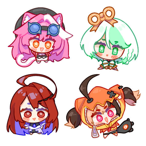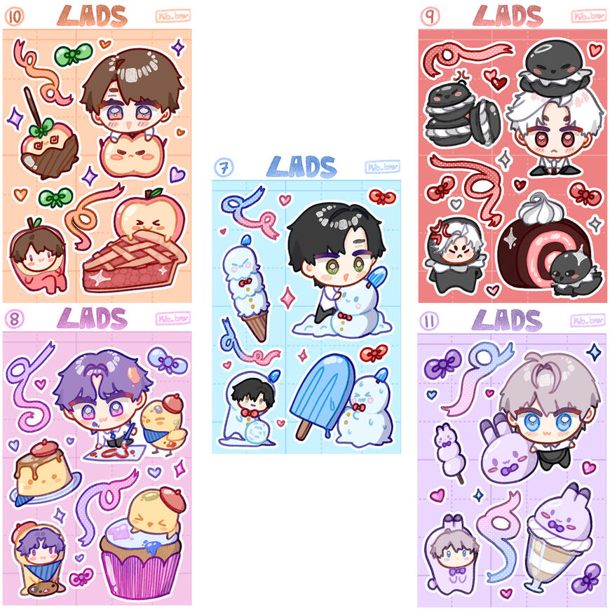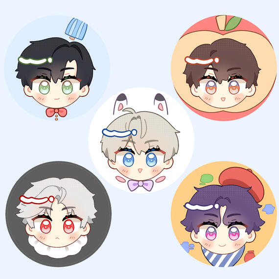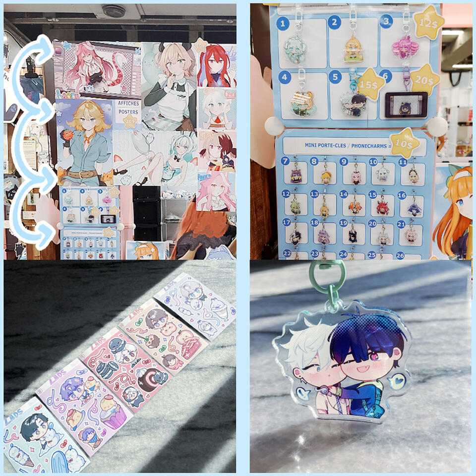 Goods/items : Stickers, Prints, keychains, plush buttons, hard buttons, standees, stickynotes, notebooks, mugs