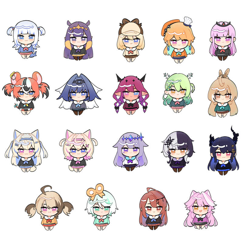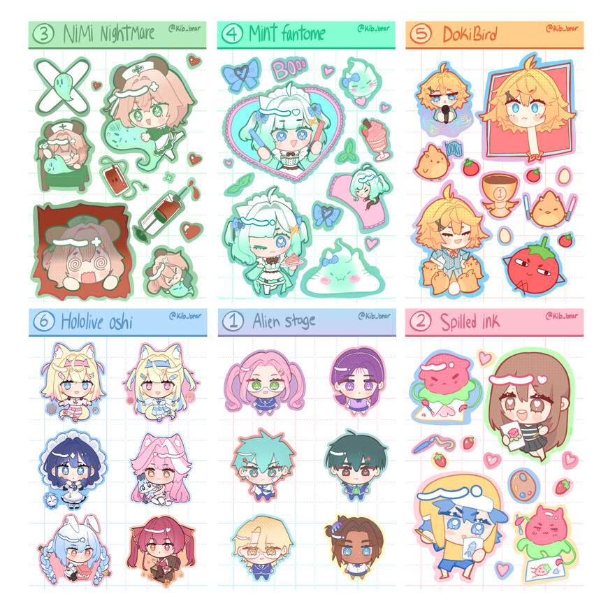 Goods/items : Stickers, Prints, keychains, plush buttons, hard buttons, standees, stickynotes, notebooks, mugs